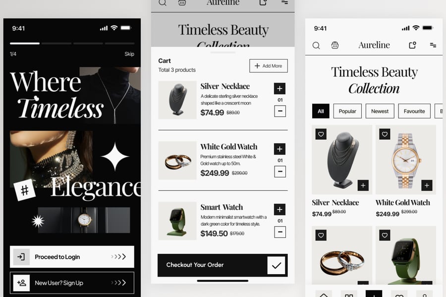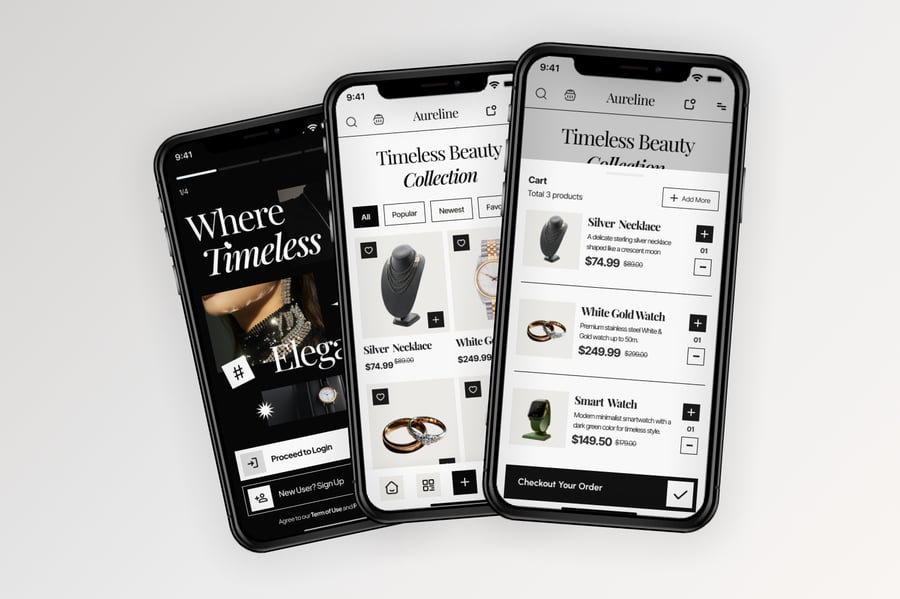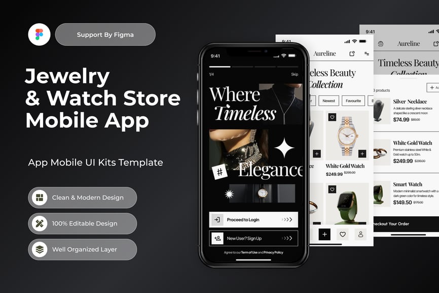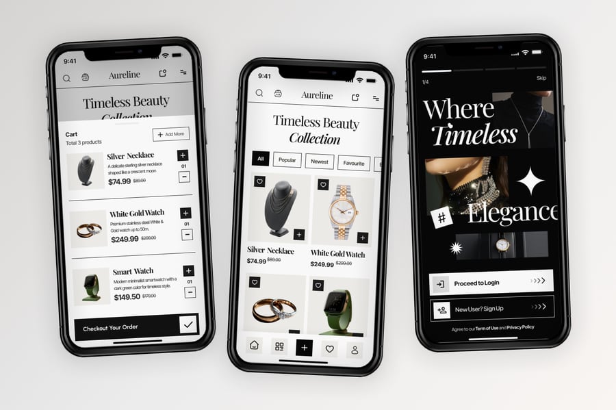 使用这款专业设计的模板,轻松打造极具影响力的珠宝腕表商店移动应用。