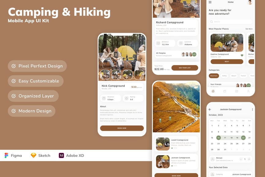 每个屏幕都可完全自定义,易于使用,并针对 Figma、Sketch 和 Adob​​e XD 进行了精心设计。