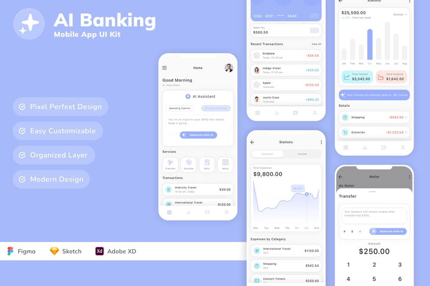 AI银行移动应用UI套件