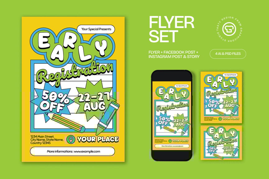 * 画板尺寸传单 8.27×11.69 英寸;Insta Post 1080x1350px;Insta Story 1080×1920 px