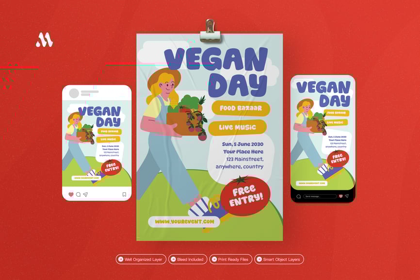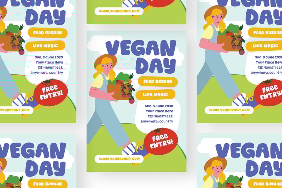 我们的“女孩素食日”传单套装带来惊艳的视觉冲击。我们精心设计,可根据您的品牌或业务进行个性化定制。无论您展示哪个行业、服务或产品,我们都能为您提供理想的传单套装。