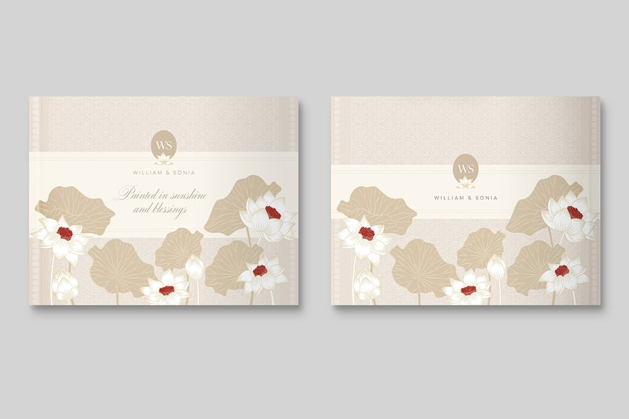 **印度婚礼相册模板,横向布局,带有曼陀罗图案和拱形图像蒙版**