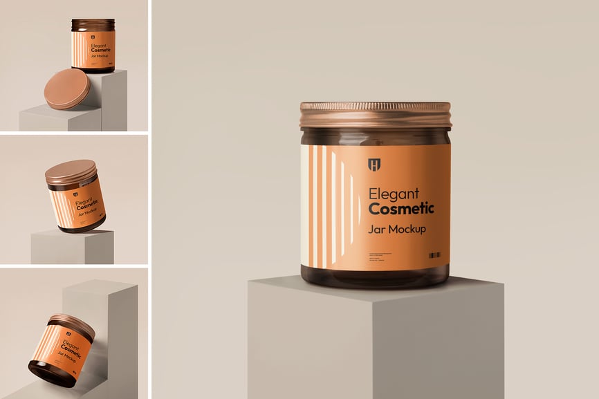 这款化妆品罐样机为展示护肤、美妆或健康产品包装设计提供了一个奢华的场景。它拥有逼真的反射效果、光滑的表面以及便捷的智能对象编辑功能。借助这款化妆品罐样机,设计师可以专业地展现简洁高端的品牌形象。