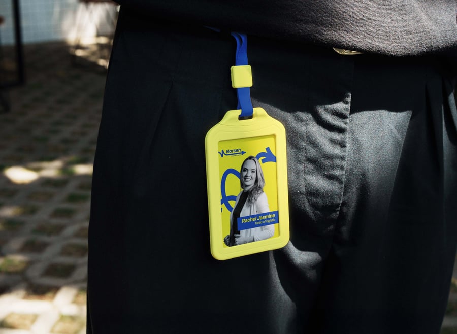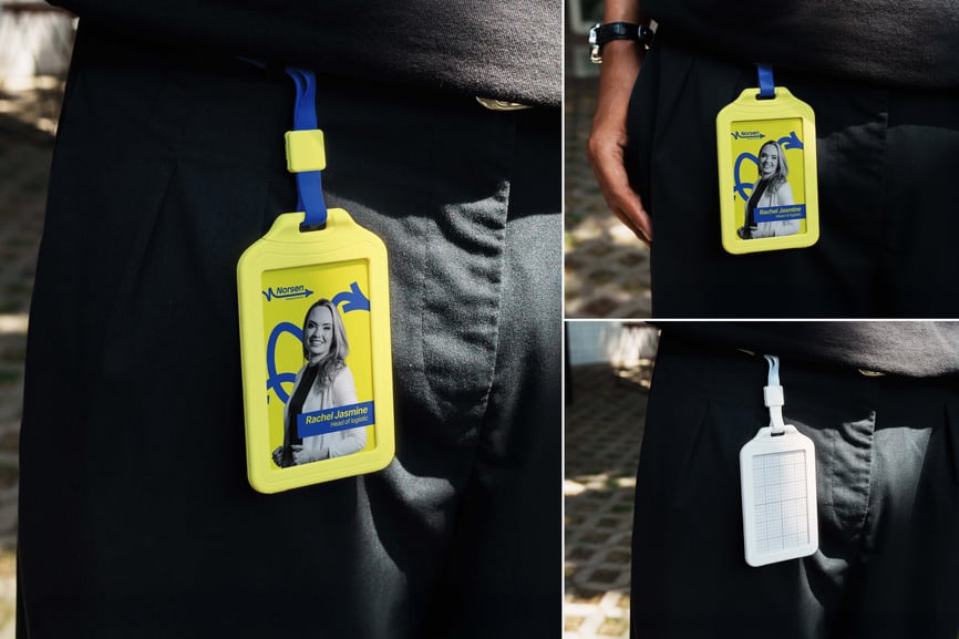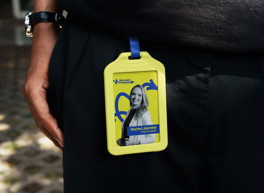 将您的卡片设计拖放到智能对象图层中,即可立即填充卡套。只需几秒钟即可调整挂绳颜色、夹子角度或阳光反射效果,营造早晨通勤或下午活动的氛围。轻松更改衬衫色调和背景虚化效果,以匹配您的佩戴式身份识别标识。