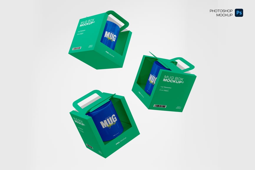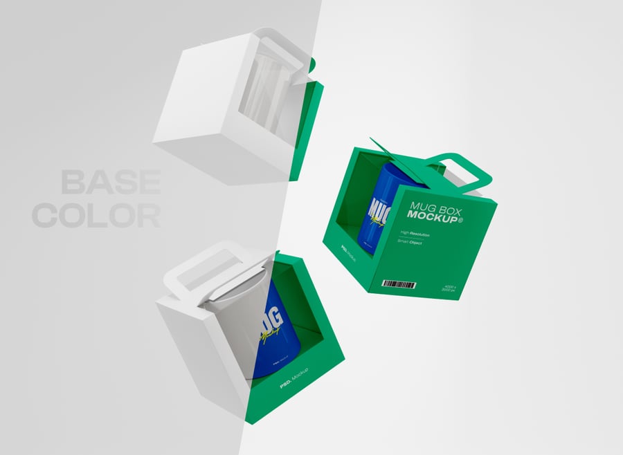 使用这款**马克杯包装样机**展示您的设计产品。文件包含颜色对象和背景的独立图层。标签的智能图层方便您轻松应用设计,使用简单。