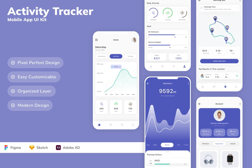 每个屏幕都可完全自定义,易于使用,并针对 Figma、Sketch 和 Adob​​e XD 进行了精心设计。