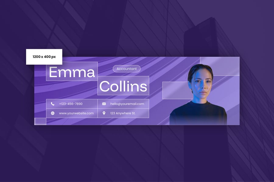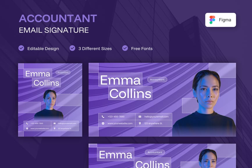 简洁专业的电子邮件签名设计,适用于商务或个人用途。一款设计提供三种不同尺寸,满足您的多种需求。现代、优雅、简洁的设计风格,令您的电子邮件签名更显专业。