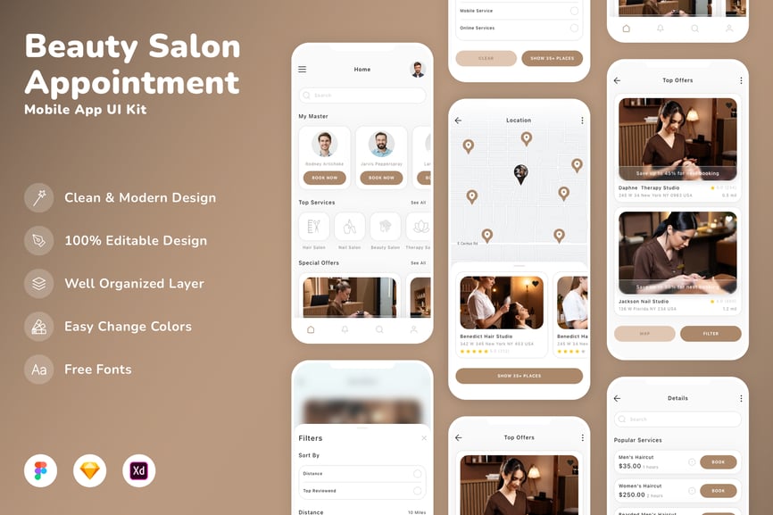 美容院预约移动应用 UI 套件