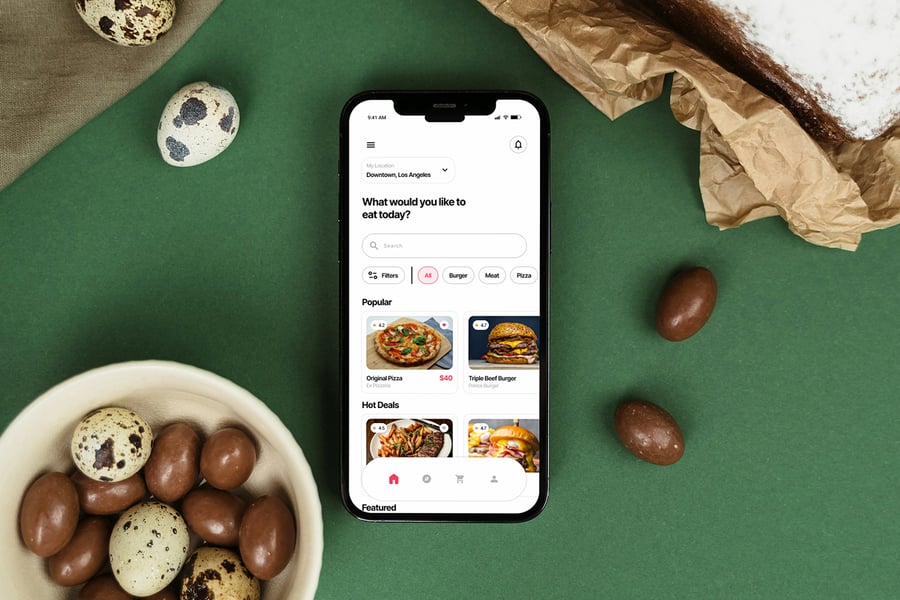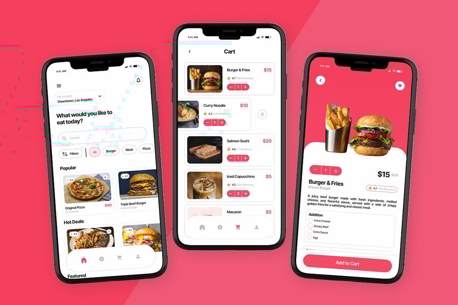 Eateria 是一款界面简洁的订餐应用,旨在支持快速浏览、清晰的菜单展示和流畅的订餐流程,并以明亮现代的色彩加以点缀。从餐厅搜索页面到详细的订单信息,其布局都注重易读性、均衡的间距和舒适的视觉体验,满足日常移动使用需求。
