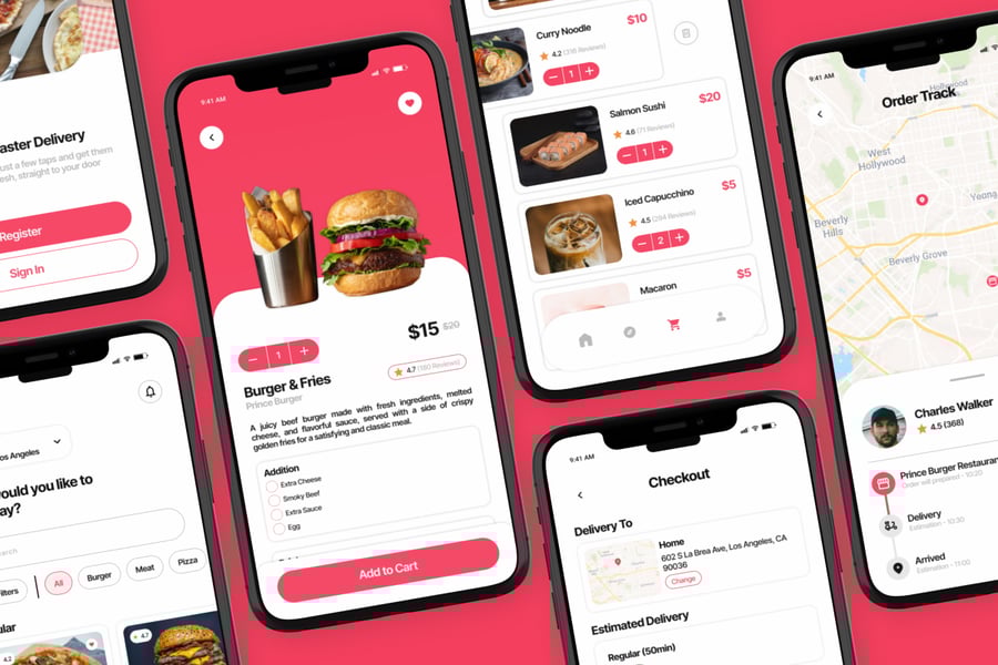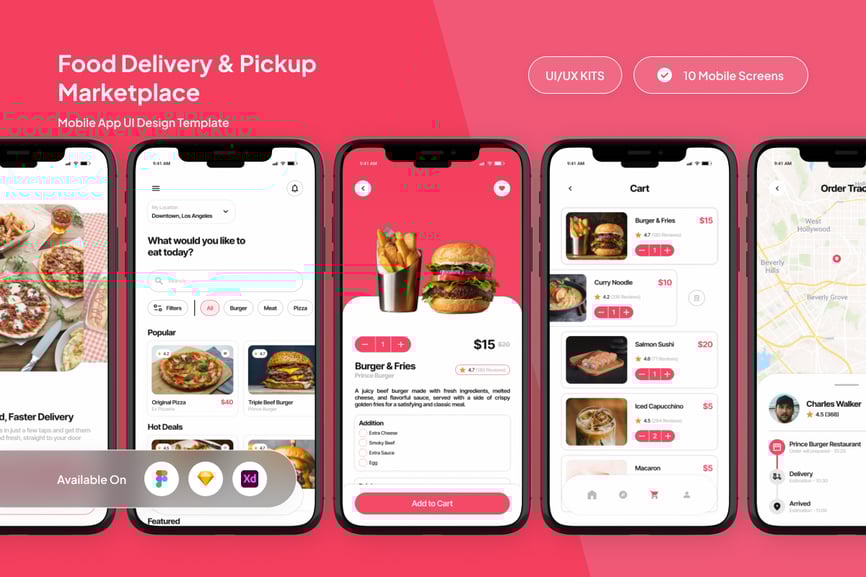 Eateria 是一款理想的食品配送应用和餐厅订餐服务界面,它提供了一个友好、可靠且可扩展的现代化 UI 基础架构。该 UI 套件包含 10 个高质量的移动端屏幕,实现了自动布局(响应式和自适应)、分层结构以及便于高效自定义的样式指南。