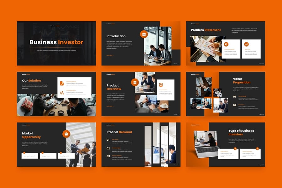 **面向商业投资者的主题演讲**,采用创意主题。此模板不仅方便您进行演示,还提供多种主题和用途选择,并允许您更改文本、图像和颜色。