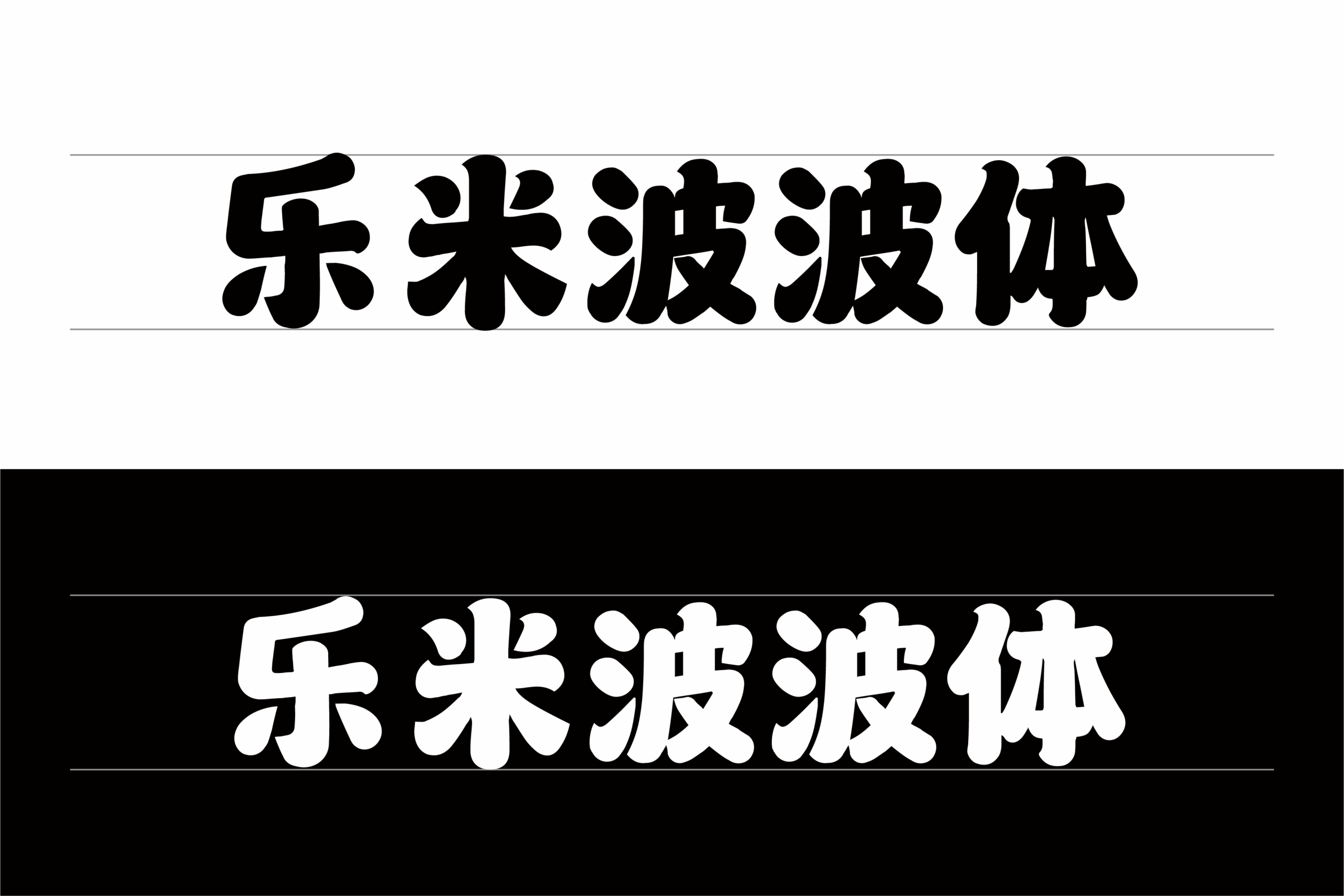 正如图1所展示的经典布局,在白色背景上,黑色字形所有笔画与转角均呈饱满的弧形,无一处尖锐;在黑色背景上,白色轮廓同样圆润清晰。装饰细线衬托出结构的稳定性,“波波体”名称所暗示的圆润、可爱特质在此得到完美呈现。
