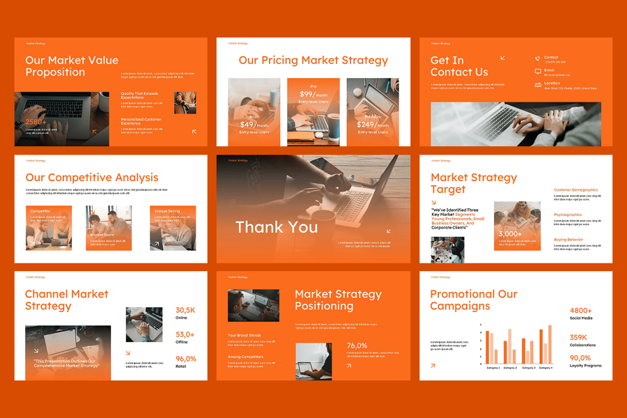 这款模板采用战略性布局、SWOT 分析幻灯片、增长图表、竞争对手对比表和市场细分信息图,让您轻松传达洞察和行动计划,从而推动业绩增长。市场战略 PowerPoint 模板是营销策略、销售计划、产品发布、业务回顾和企业演示的理想之选,确保您的信息清晰、数据驱动且具有说服力。