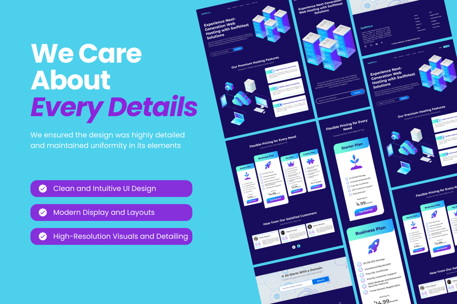 总而言之,高速主机体验着陆页模板的内置设计系统是一个强大的工具,它使主机服务提供商能够轻松创建视觉效果惊艳、响应迅速且用户友好的着陆页,同时保持品牌一致性,并在设计过程中节省宝贵的时间。