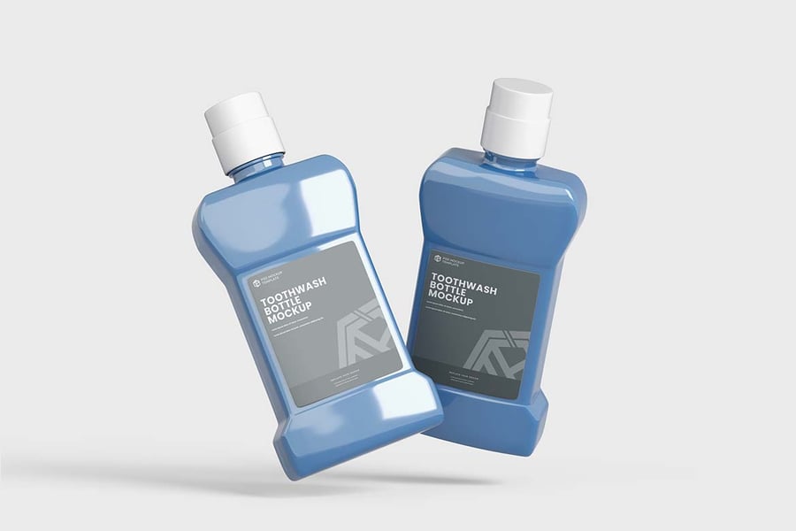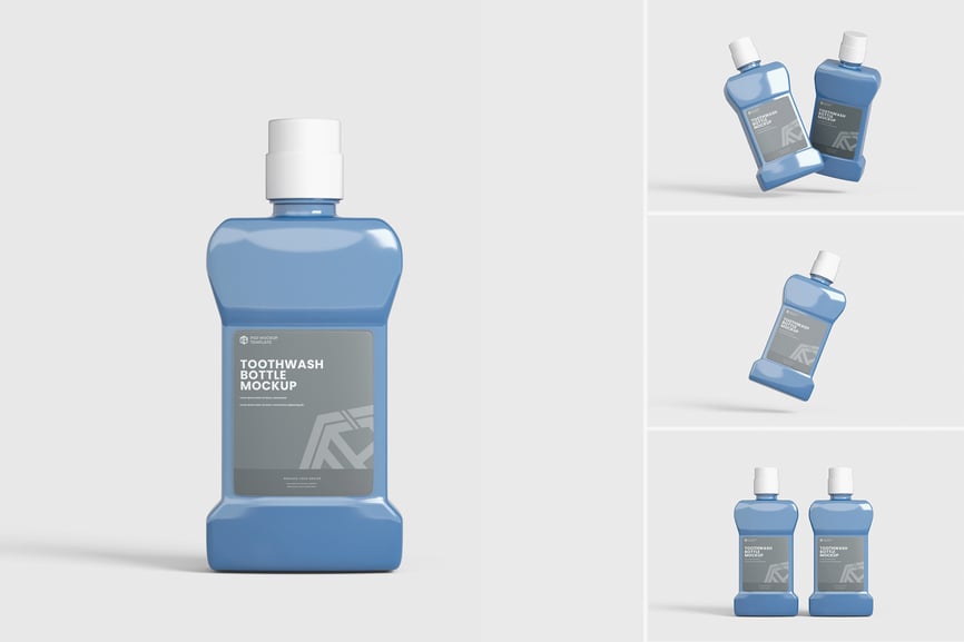 使用这款漱口水瓶模型,以正确的方式展示您的漱口水瓶模型设计!只需使用 Photoshop 的智能对象,一键即可放置您的设计。就这么简单!