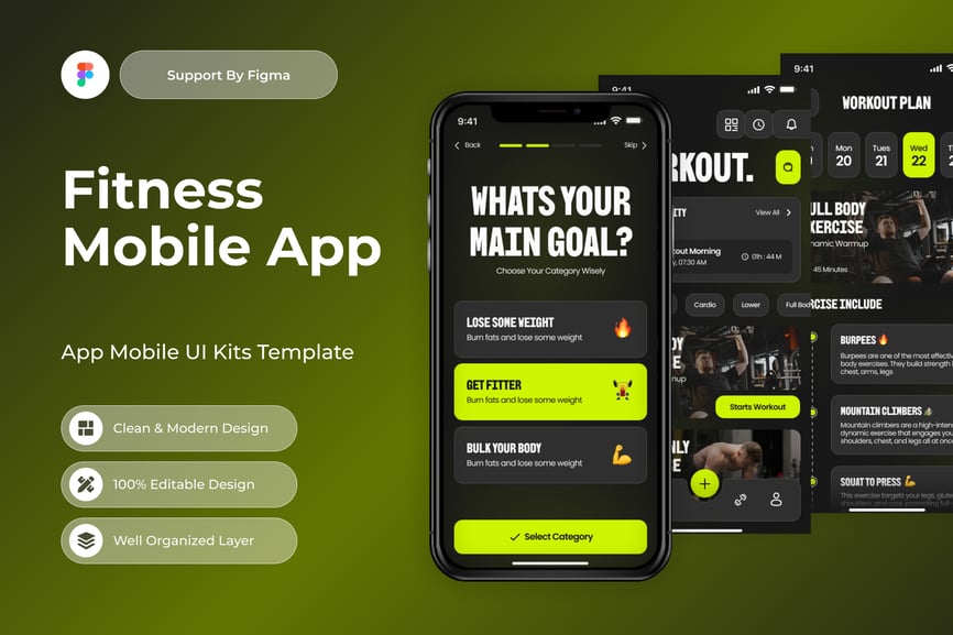 使用这款专业设计的模板,轻松打造极具影响力的健身移动应用。