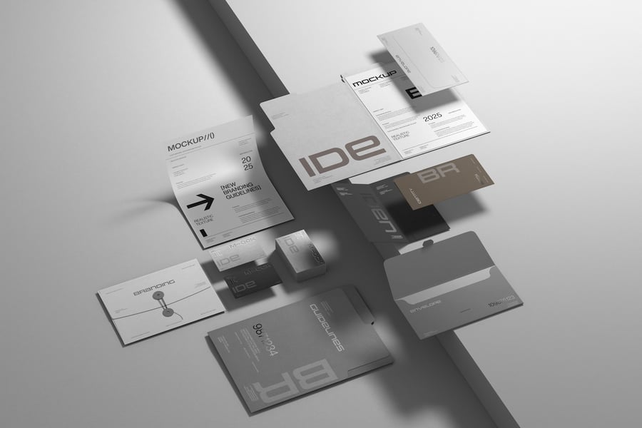 此模型合集包含种类繁多的文具用品,可用于品牌推广和形象展示。设计师可以利用它来展示文件夹、卡片、信封和文档的印刷布局