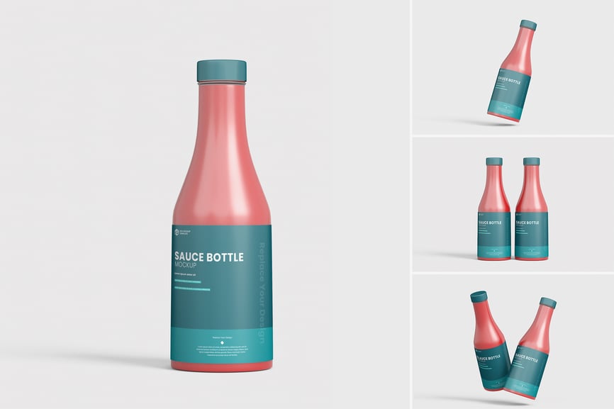 使用这款酱料瓶模型,以正确的方式展示您的酱料瓶模型设计!只需使用 Photoshop 的智能对象,一键即可放置您的设计。就这么简单!