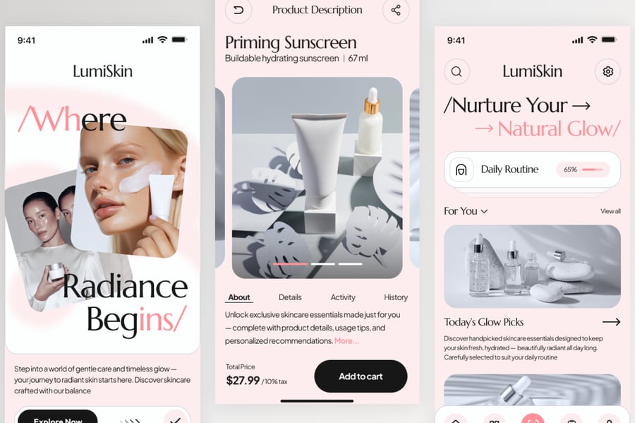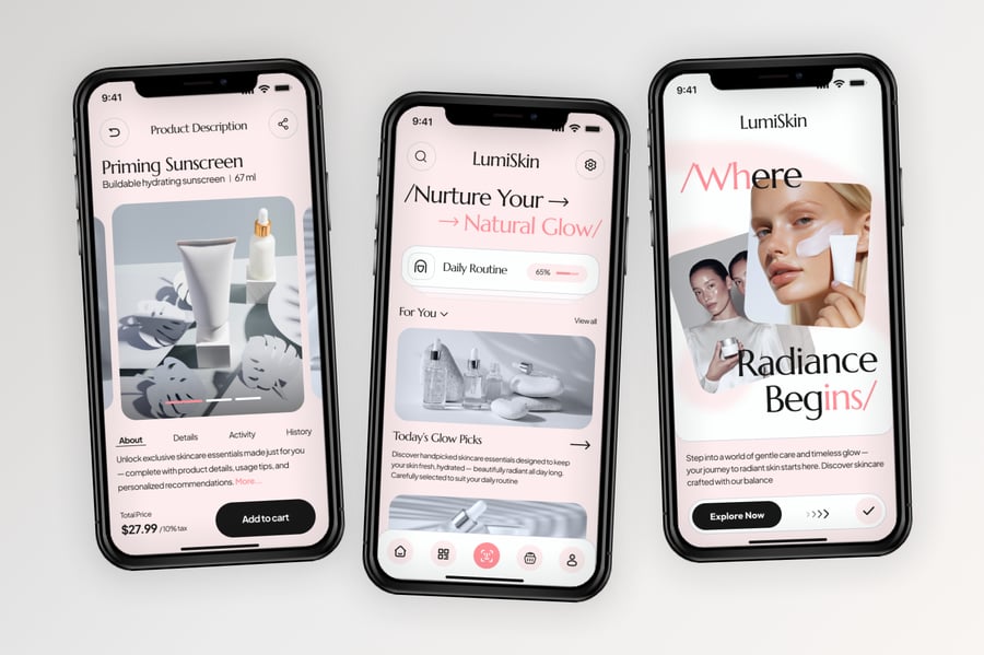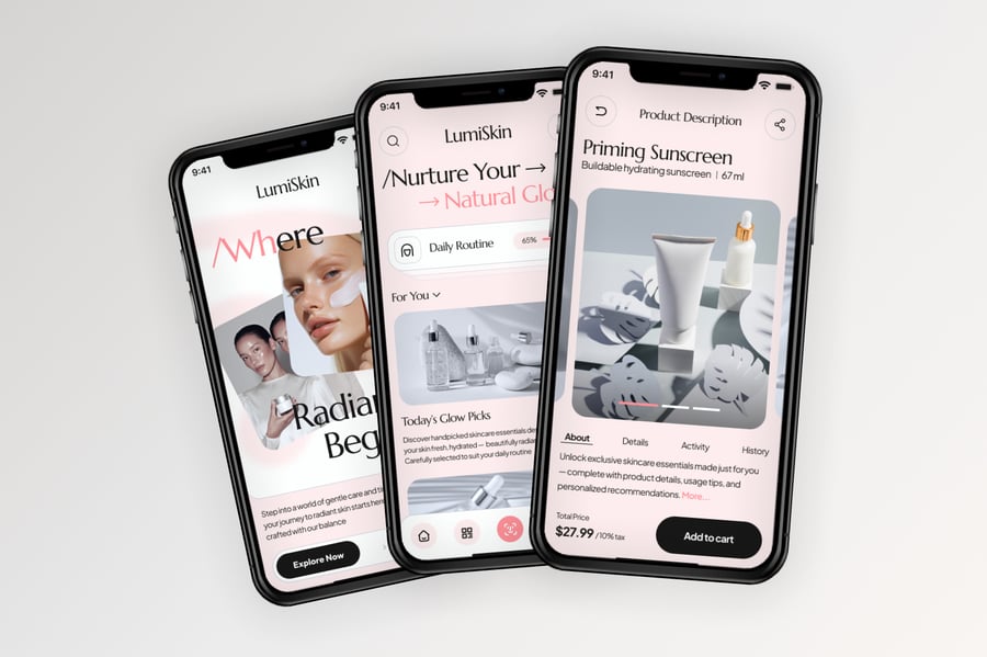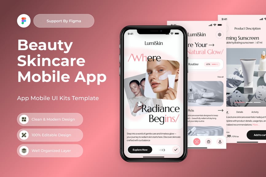 使用这款专业设计的模板,轻松打造极具影响力的美容护肤移动应用。