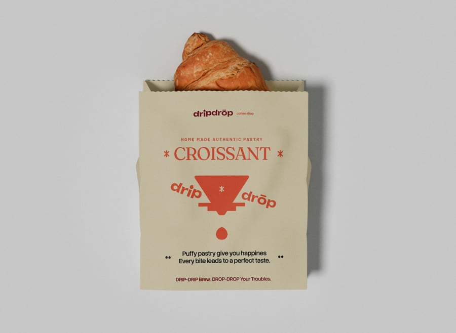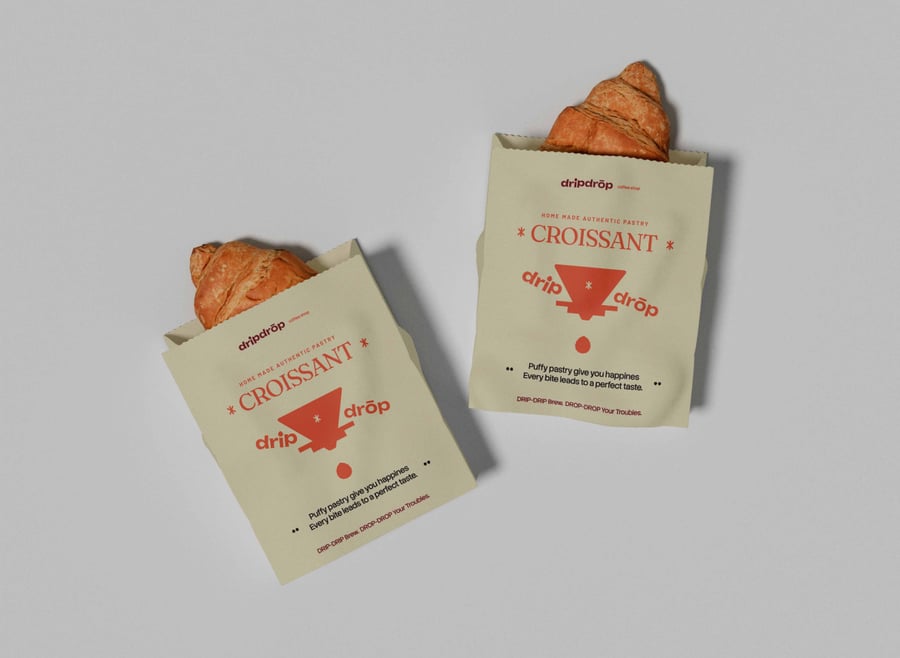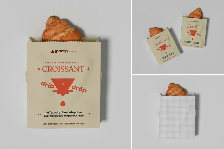 1. 咖啡馆外卖品牌宣传,配有装满牛角面包的包装袋