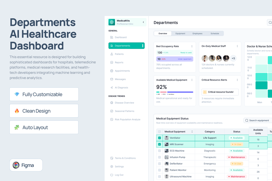 MedicalKits 是一款 AI 医疗健康仪表盘,设计简洁现代,包含高质量界面。MedicalKits 易于定制,可满足您的各种需求。提供浅色模式,并可在 Figma 中轻松使用。