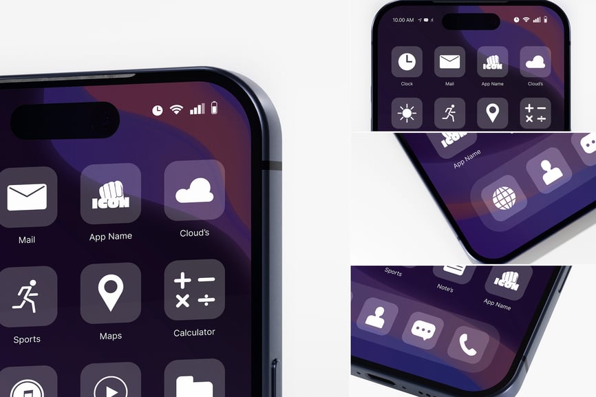 将您的屏幕设计拖放到智能对象图层中,即可立即查看效果。只需几秒即可调整图标网格、发光强度或反射强度,打造活力四射或简约精致的视觉效果。轻松更改设备边框和背景色调,以匹配您的移动应用设计理念。