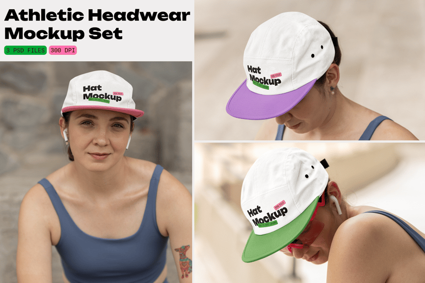 使用运动帽样机套装提升您的服装品牌形象。此套装包含三个充满活力、专业的 PSD 场景,完美展示您的帽子设计、标志和徽章。这些样机采用真实模特在户外场景中拍摄,为您的运动或生活方式品牌提供真实且引人入胜的展示环境。