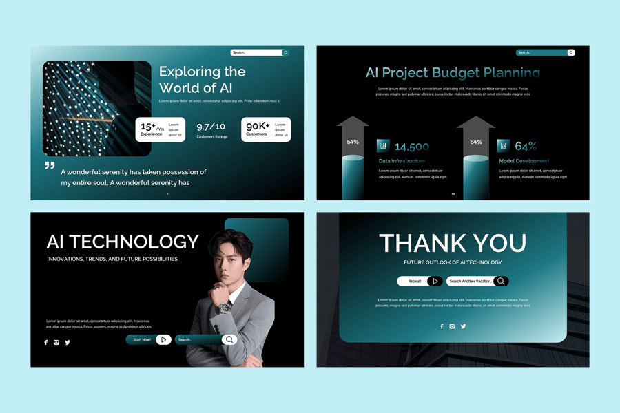 这款幻灯片采用现代未来主义设计,简洁的字体、科技感十足的图形、图表和数据可视化,每张幻灯片都可用于展示神经网络、模型工作流程、决策过程、关键绩效指标 (KPI) 和实时分析。视觉占位符清晰有力地阐释了人工智能驱动的解决方案、产品特性、行业应用和技术框架。该幻灯片可完全自定义,适用于人工智能幻灯片、机器学习演示模板、数据科学演示文稿、自动化技术幻灯片、人工智能创业公司路演演示文稿、智能系统演示、人工智能商业解决方案模板、神经网络信息图幻灯片、预测分析演示、企业人工智能提案、智能技术、人工智能创新演示、数字化转型人工智能演示文稿以及算法工作流程演示。