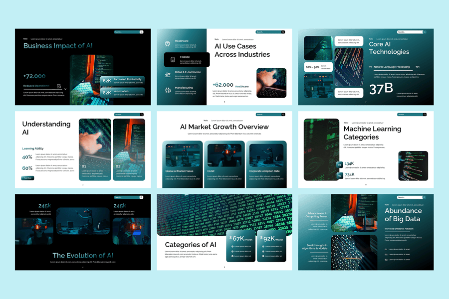 使用这款人工智能技术 PowerPoint 模板,清晰权威地展示智能系统、数据驱动的创新和面向未来的解决方案。该模板专为科技公司、人工智能初创企业、SaaS 提供商、研究团队、咨询顾问、企业和教育工作者设计,可帮助您以简洁专业的布局阐释人工智能概念、机器学习模型、数据工作流程、自动化用例、人工智能产品、系统架构及其对业务的影响。