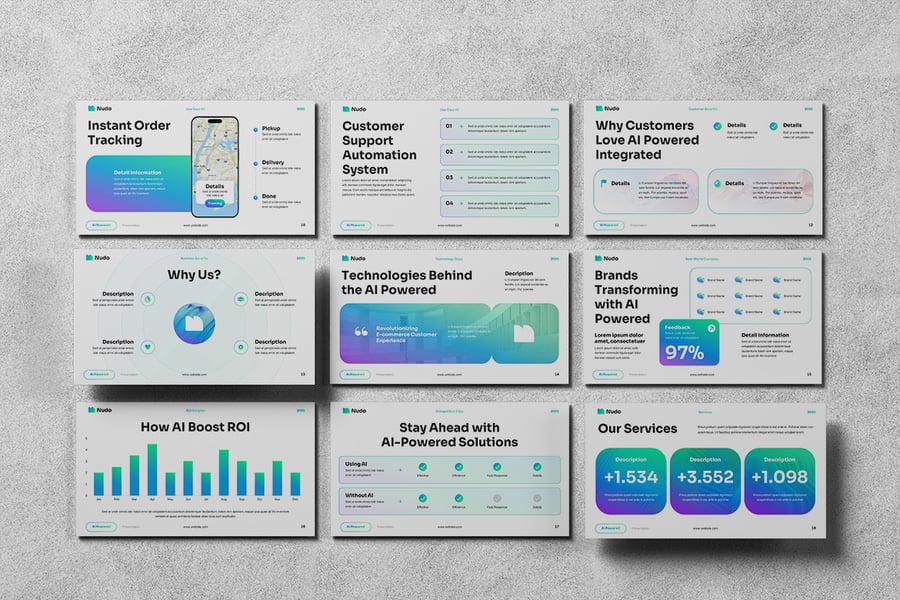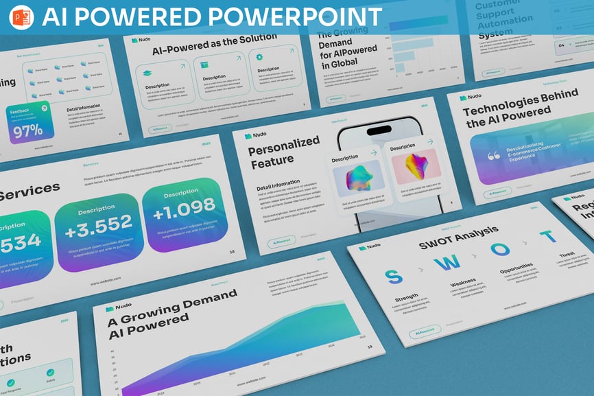 这款人工智能驱动的 PowerPoint 模板旨在帮助初创公司、科技公司和业务团队自信地展示人工智能解决方案。该模板专注于将机器学习、自动化、预测分析和数据智能等高级概念转化为易于理解且极具说服力的结构化可视化故事。它非常适合用于展示人工智能产品、解释工作流程或支持数据驱动决策,能够将创新转化为引人入胜的演示文稿,吸引技术和非技术受众。