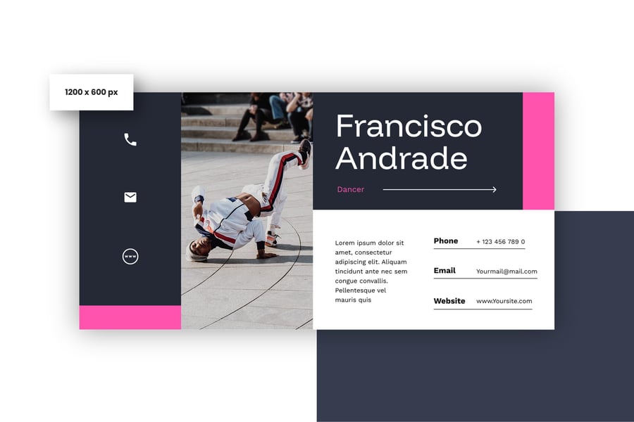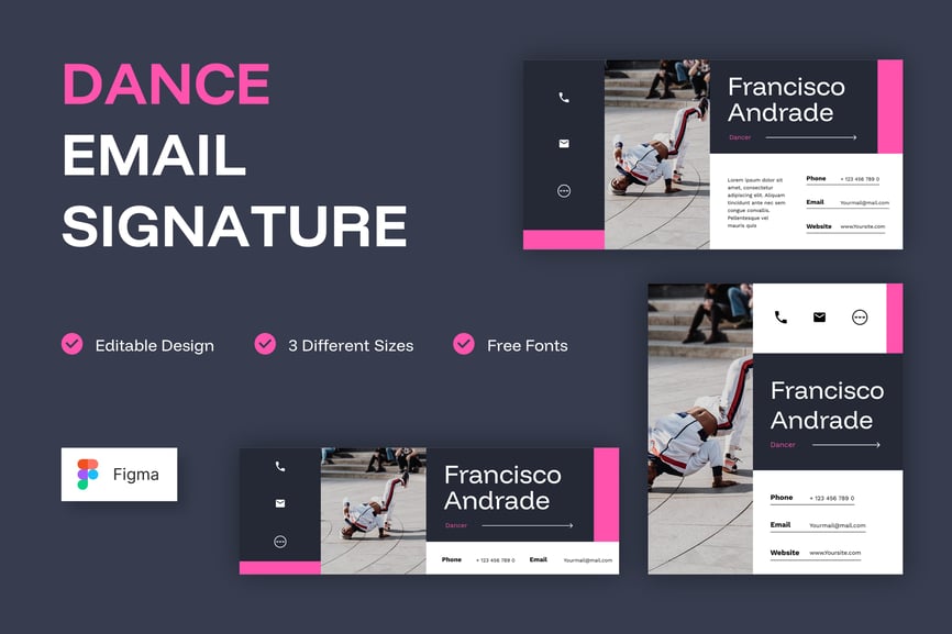 简洁专业的电子邮件签名设计,适用于商务或个人用途。一款设计提供三种不同尺寸,满足您的多种需求。现代、优雅、简洁的设计风格,令您的电子邮件签名更显专业。