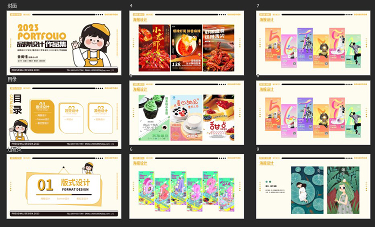 从封面到目录,再到作品展示页和封底,全都有!每一页的布局都设计得超合理,文字与图片的排版很舒适,轻松就能把你的设计作品完美呈现,再也不用为怎么排版而发愁啦。