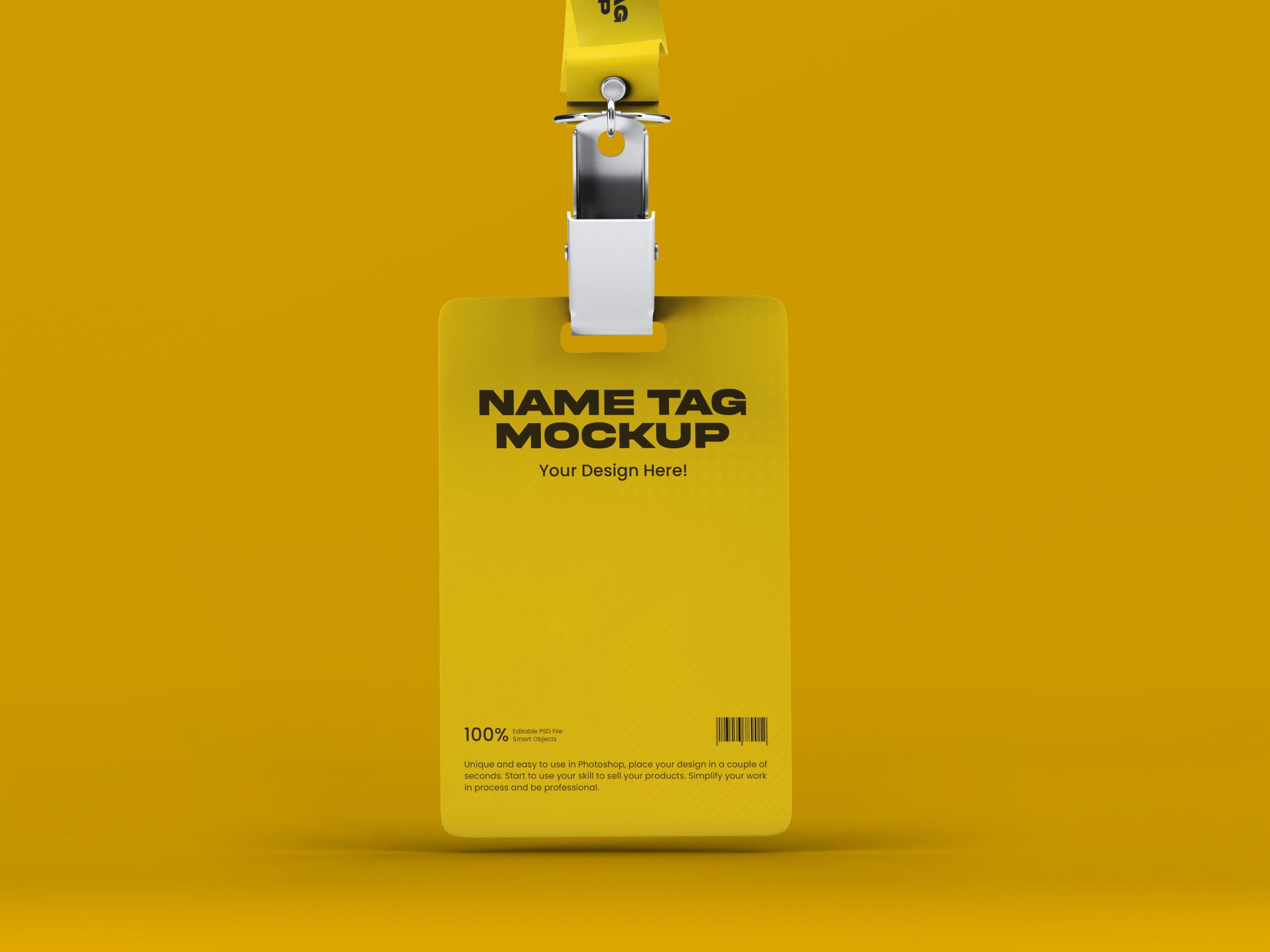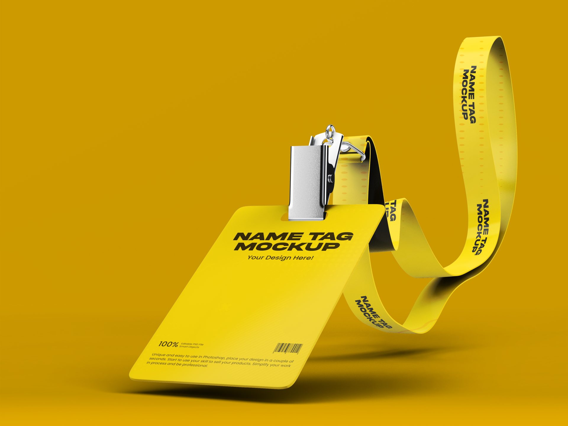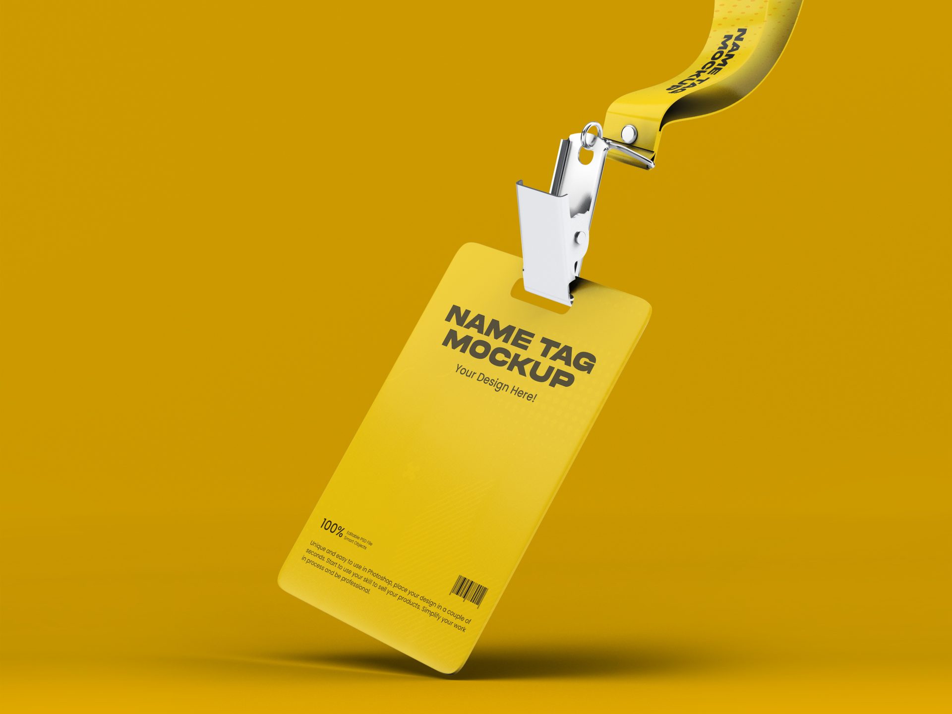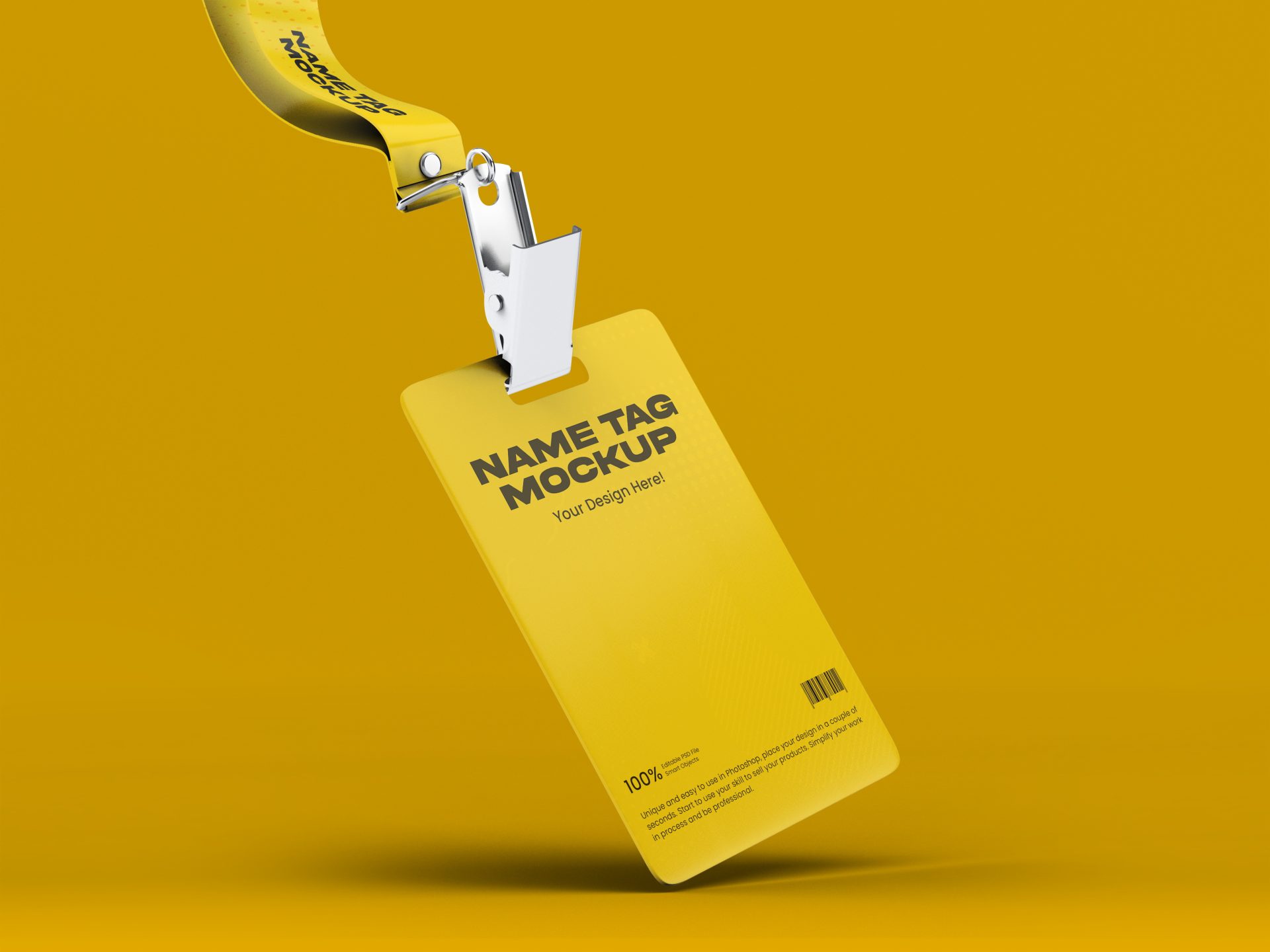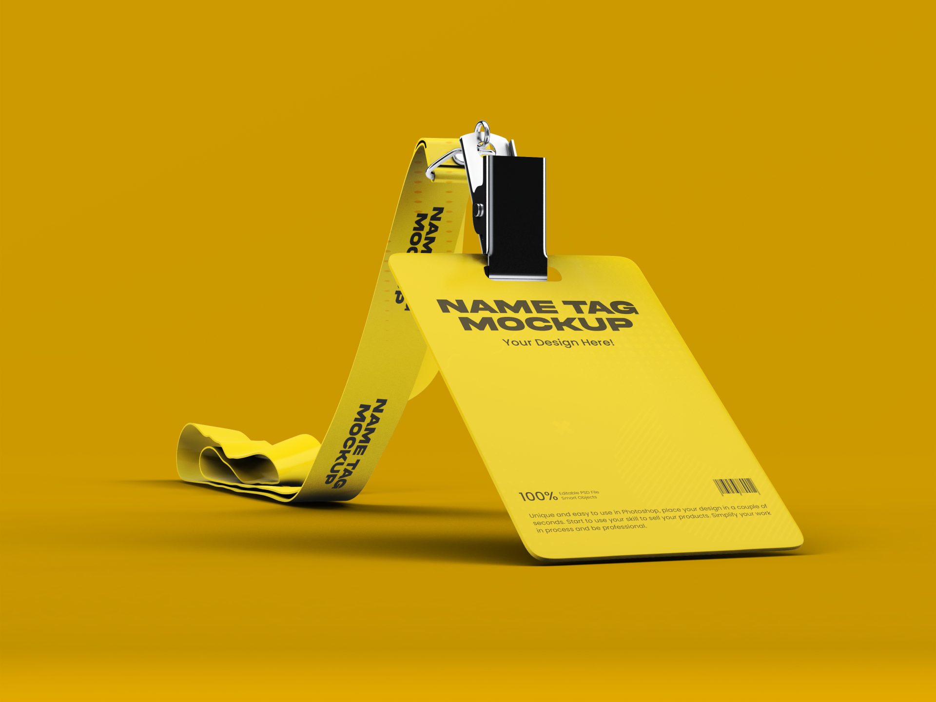 🎉5 视角黄色竖版吊牌员工工牌通行证件展示效果 PSD 智能样机,让你的证件设计更出众!🎉