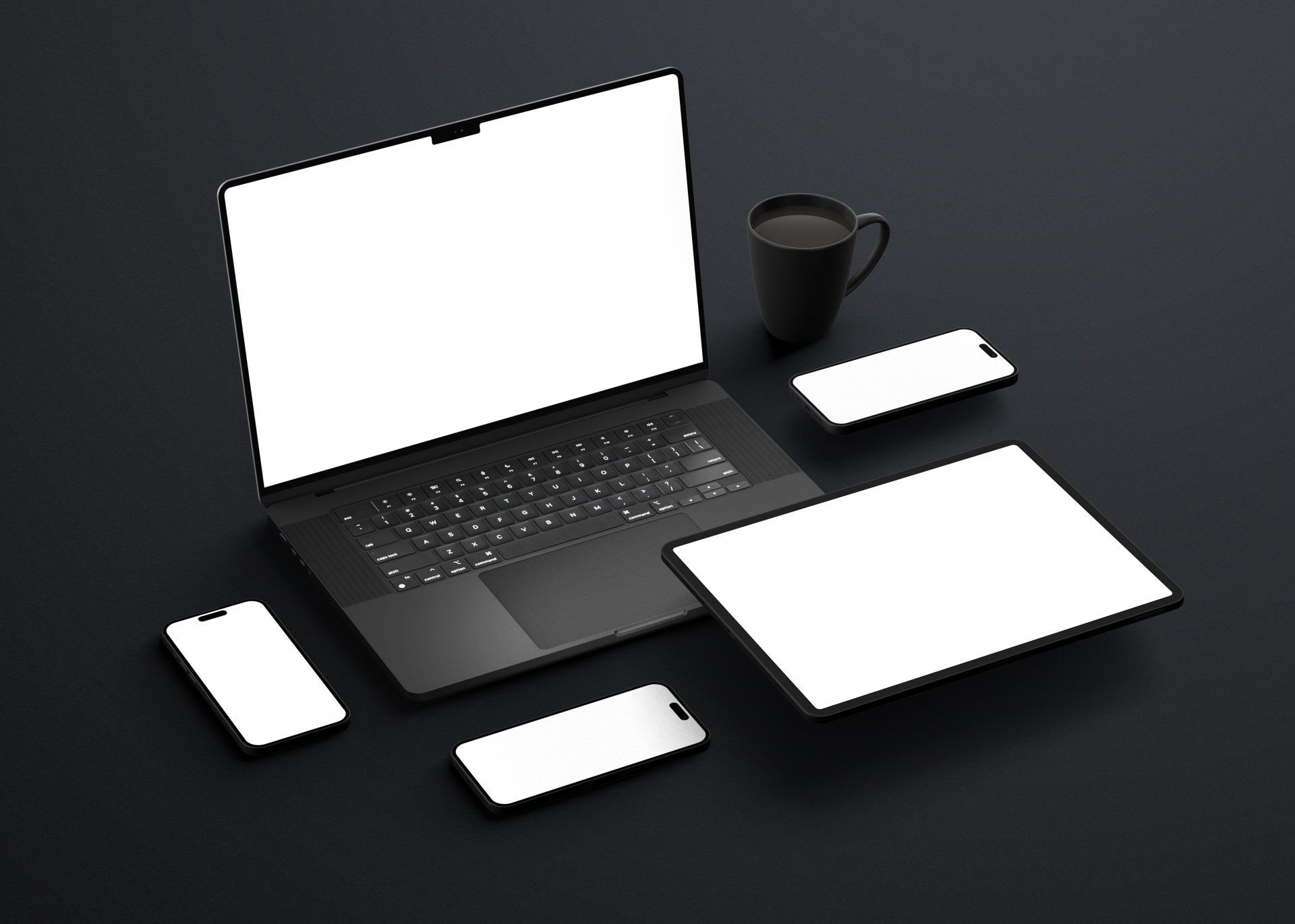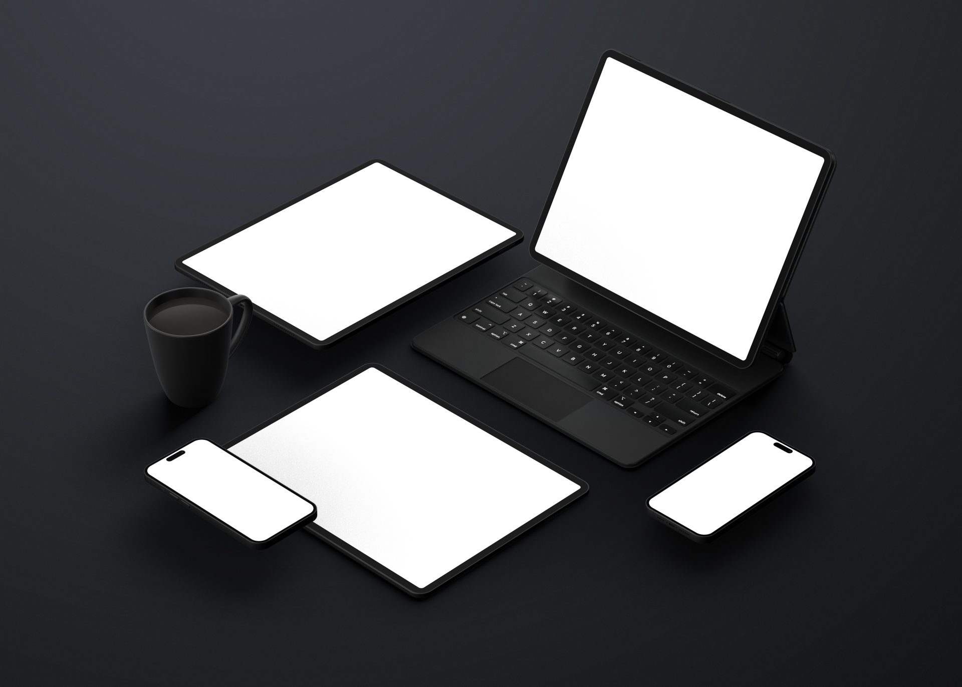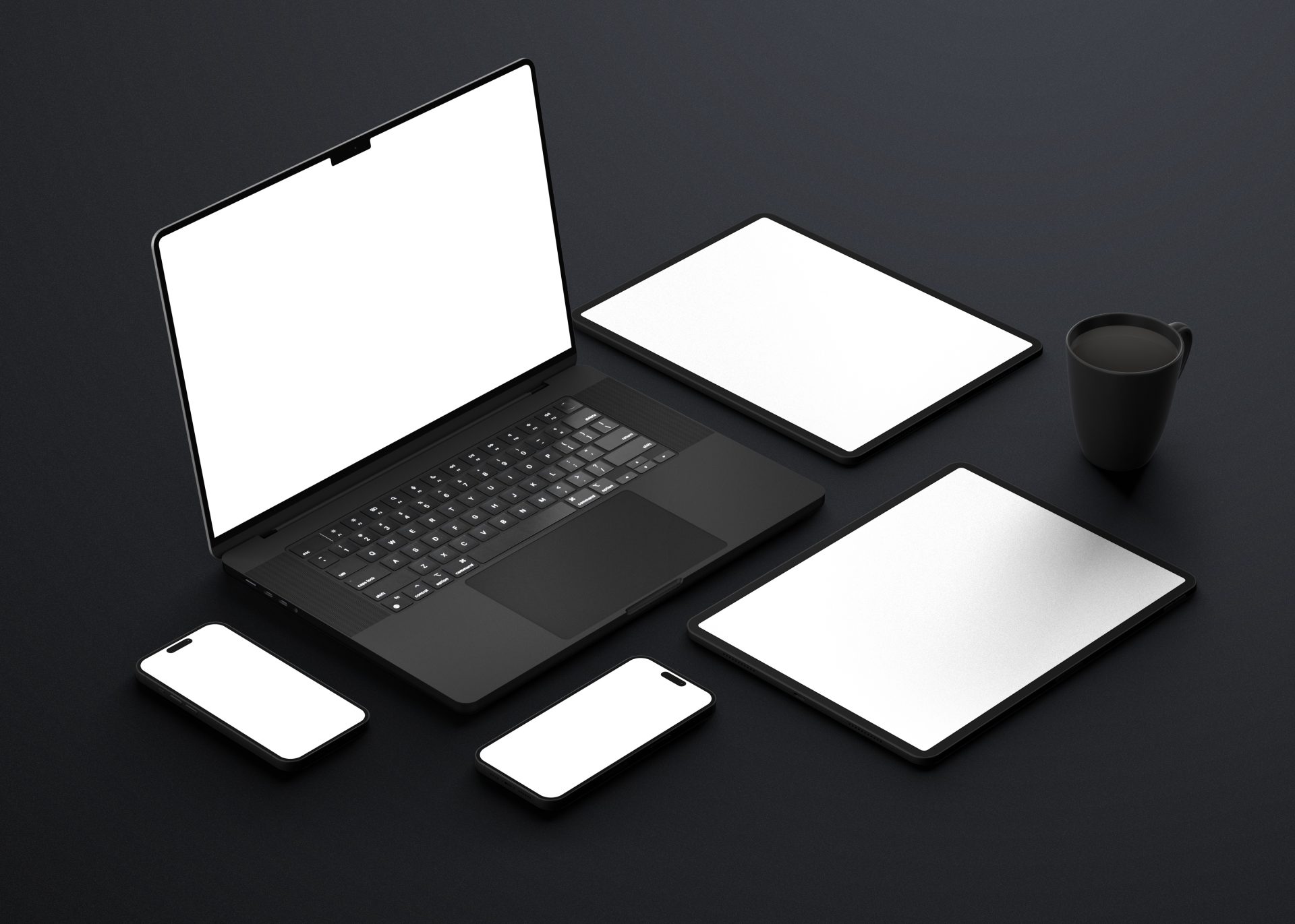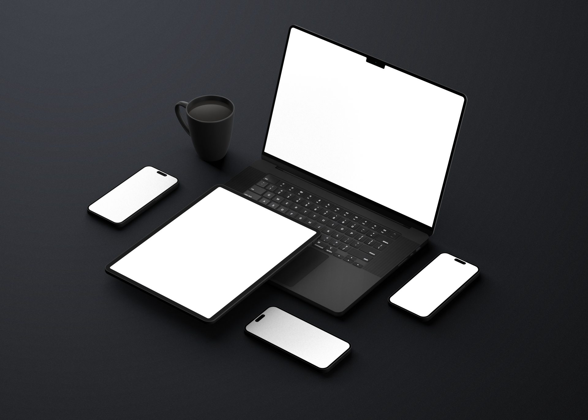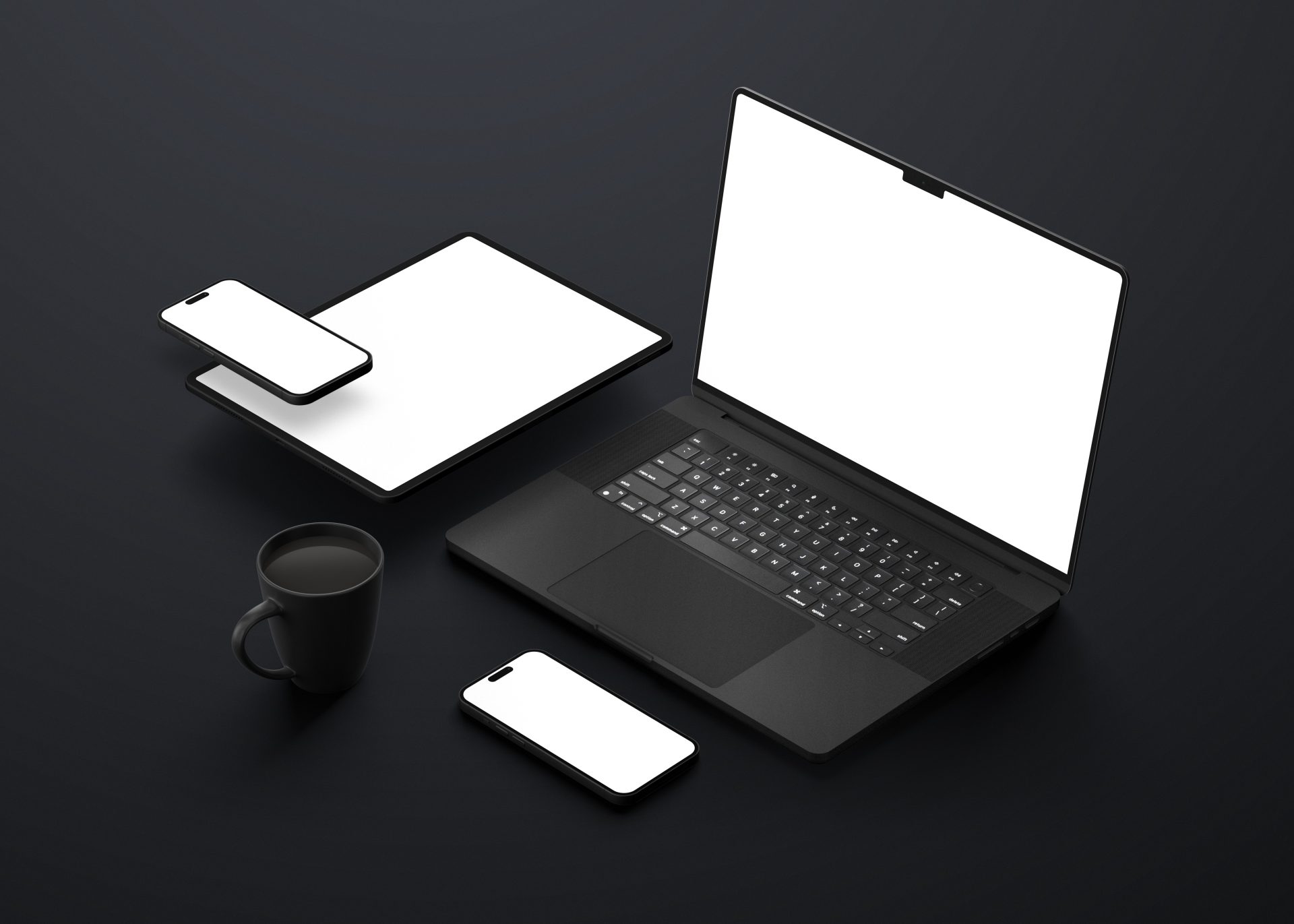 📱哑光黑色手机笔记本电脑 ipad 平板设备屏幕展示 VI 智能 PSD 样机📱