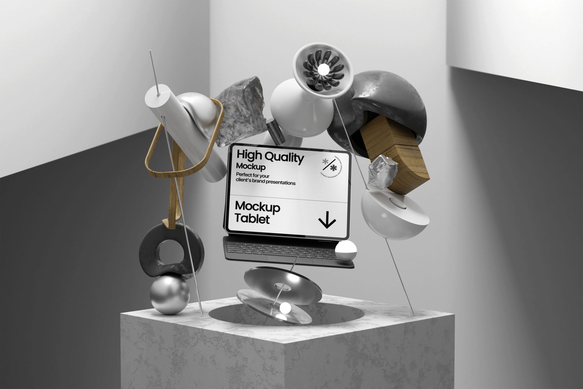 ✨这组素材是现代艺术装置抽象几何风格的 iPad 平板电脑界面屏幕壁纸样机,让你的设计瞬间高大上✨!