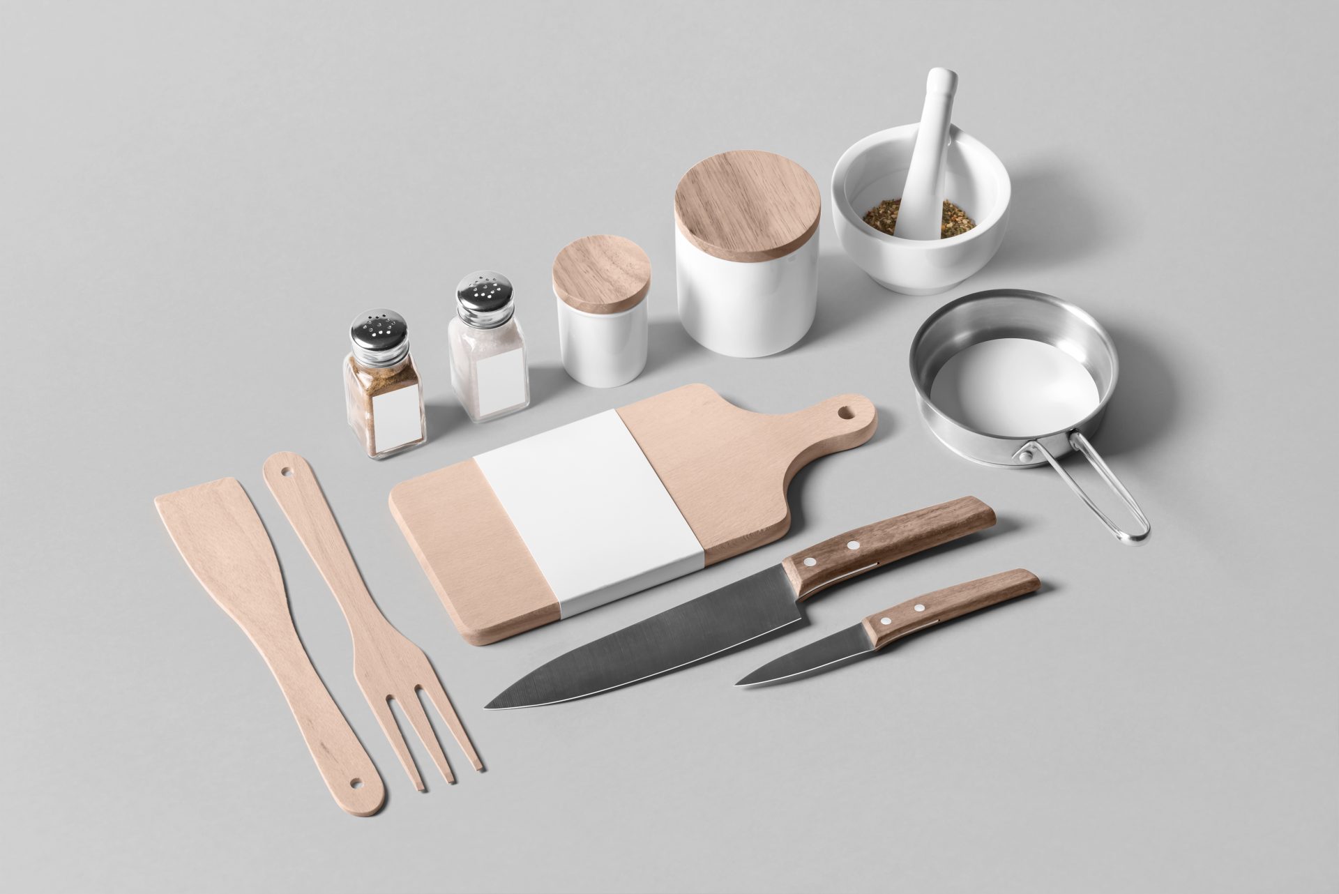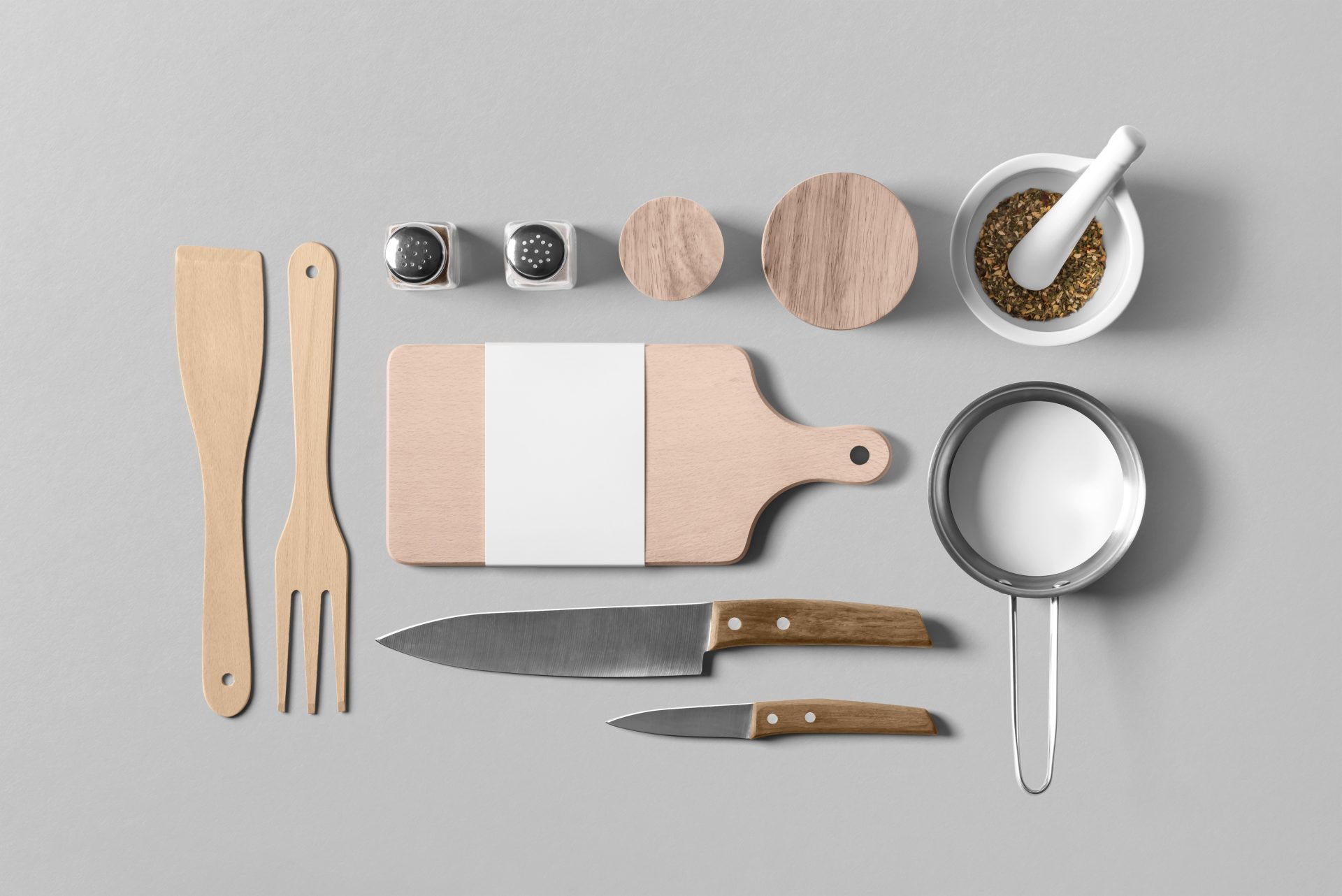 👩🍳餐饮厨房用品 VI 样机提案效果图展示 VI 智能贴图 PSD 样机设计素材👩🍳