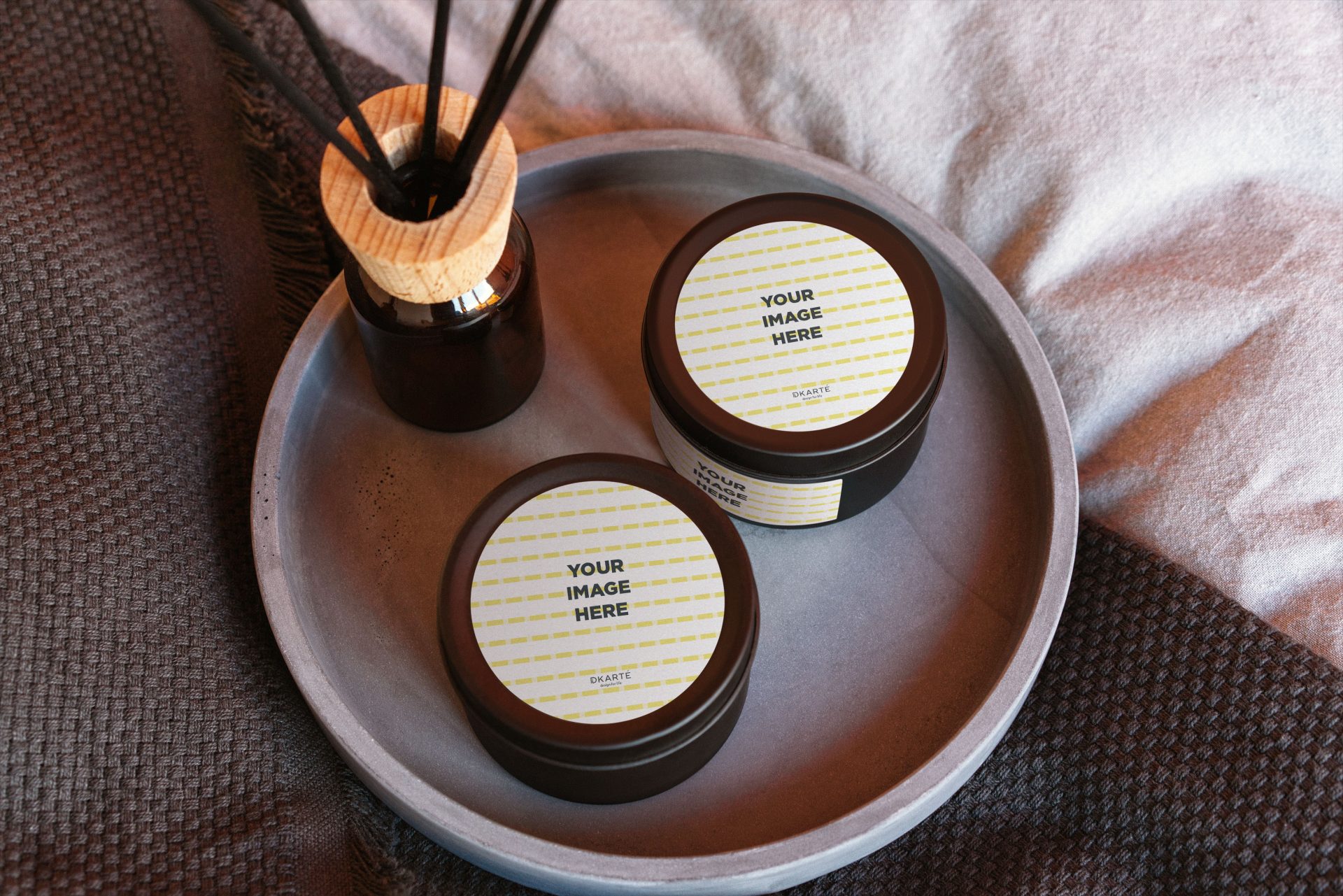 💎创意现代优雅化妆品蜡烛香薰玻璃杯样机贴图效果展示 PSD 设计素材💎