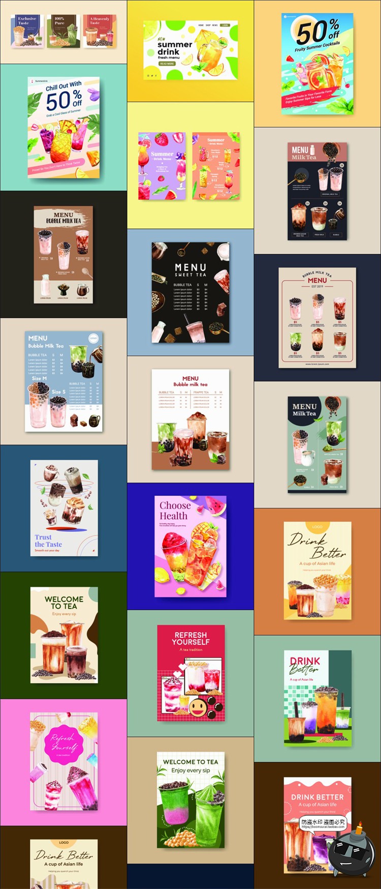 这套咖啡奶茶素材太实用啦!74款矢量模板配100+图案,店铺设计效率直接翻倍,预览图贴心必须好评!☕️✨