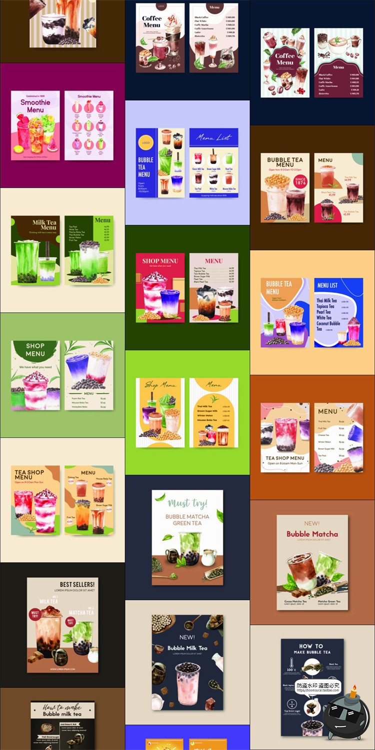 这套矢量素材太棒了!74款模板+100图案,可编辑又高清,预览图超贴心,咖啡店设计有救啦☕️