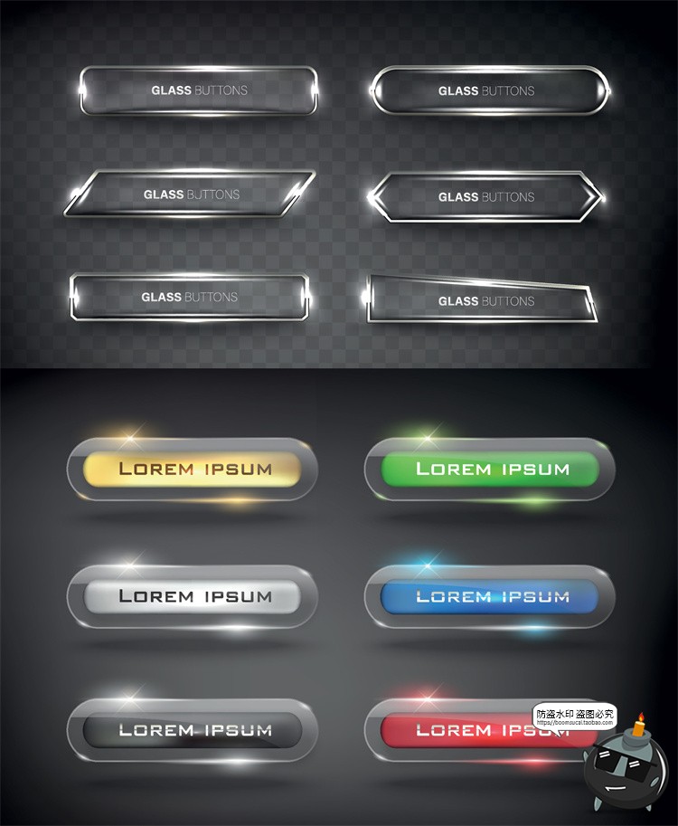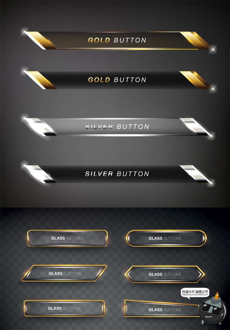 这套金银水晶按钮设计太精致了!矢量分层超实用,预览图也很贴心,UI设计必备素材!