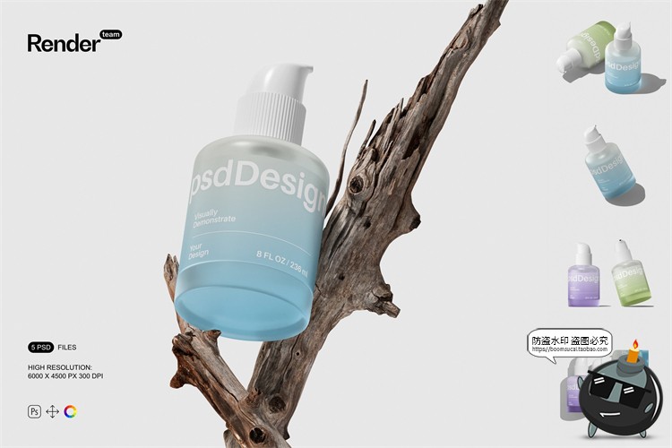 这个磨砂瓶质感绝了!五款设计都很实用,做美妆包装效果图效率翻倍~